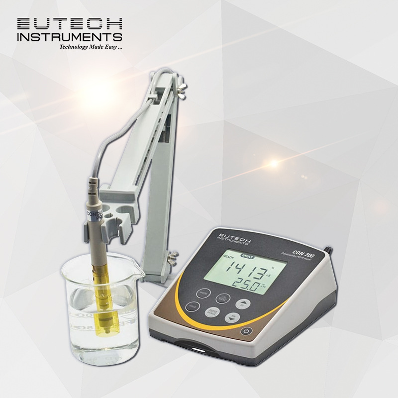 经济型 Eutech CON 700 能多年保持准确、一致的性能。仪器操作简便,是实验室、工厂和学校的理想研究伙伴。它有一个大屏幕,可显示电导率或 TDS 读数及温度(单位:ºC 或 ºF)。读数稳定后,准备就绪指示器将发出提醒。其他特性还包括可选电池常数、在 5 个电导率和 TDS 范围内自动调整量程、多达 5 点的按钮式校准、可保存多达 100 个数据点的稳定内存以及整体式电极架。