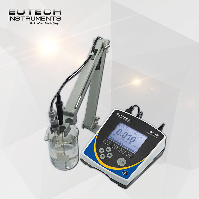 Eutech ION 2700 系列产品配有一目了然的大屏幕,具有直观、自我诊断、灵活功能,提供了用户可定制的高级设置选项。可同时查看 pH 值、离子或氧化还原反应读数以及温度、电极状态、校准点、日期和时间。所有配置包括 30X427301 RS232 线缆、100/240 VAC 电源适配器和一体式电极架。