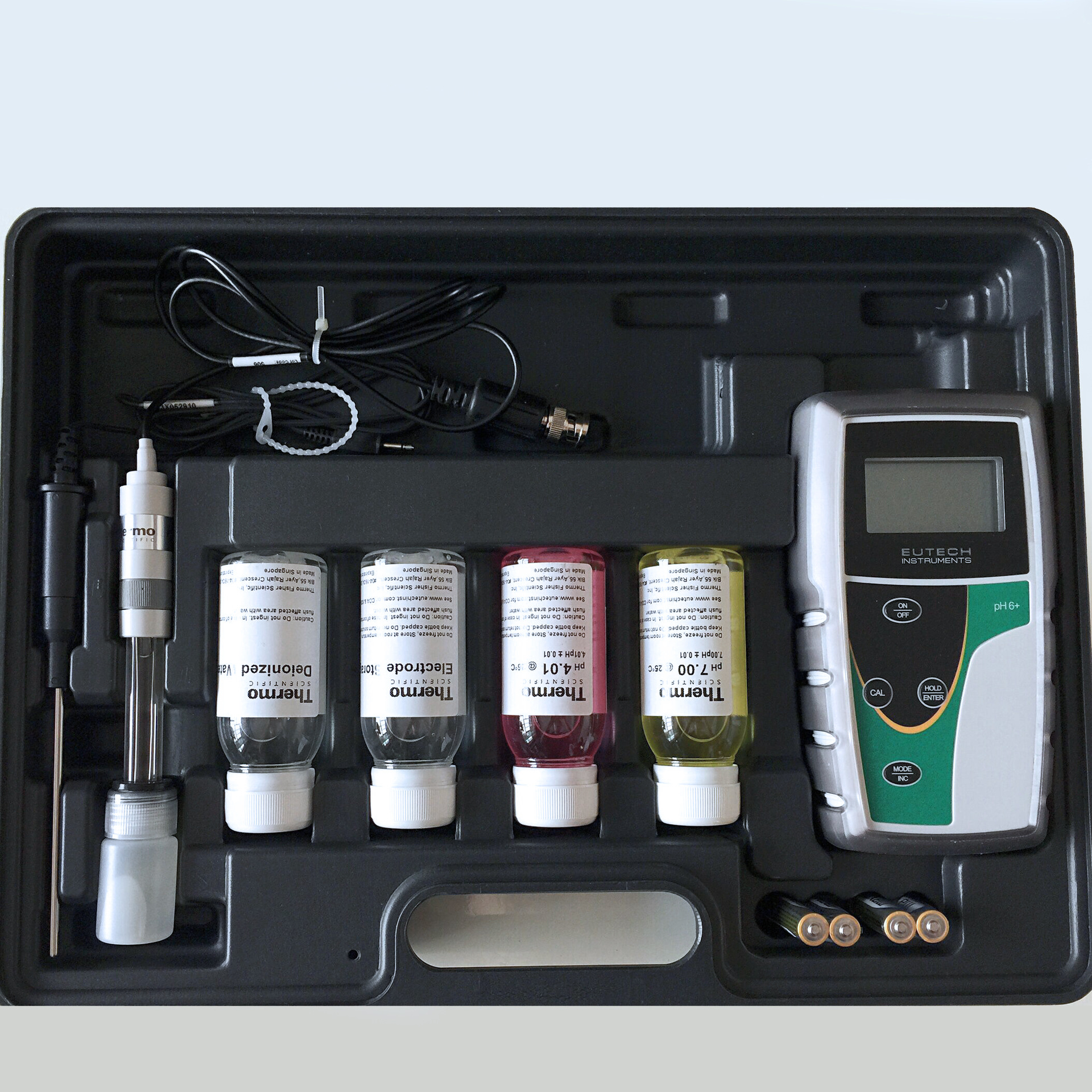 Eutech™ 提供品种繁多的 pH 值测量仪和电极,可在各种教学、实验室和工业应用中测量 pH 值。Eutech™ pH 6+ pH 值测量仪 ECPH602PLUSK(含单液接 pH 电极)或 ECPH603PLUSK(含三合一 pH/温度复合电极)是实验室、生产工厂和学校进行各类常规应用的理想选择。