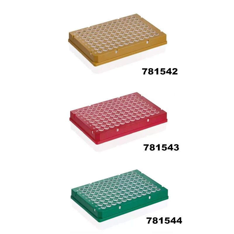 96孔PCR板, 硬质框架, PC/PP, 金色, 全裙边, 低容, 透明管, BIO-CERT® PCR QUALITY |